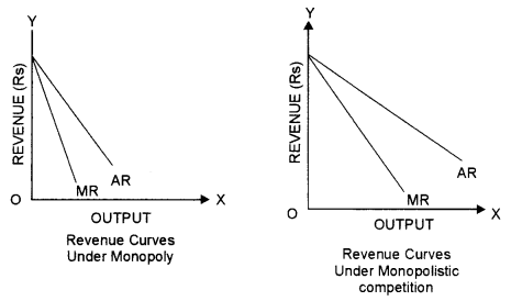 Under monopolistic competition also, AR and MR curves are two separate curves. The slope > downward from left to right. But both these curves are more elastic than the curves under monopoly.
