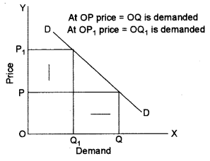 (xv) Keeping other things constant an increase in the price of a commodity will inversely affect its quantity demanded. In other words, an increase in the price of say X commodity will reduce or decrease its quantity demanded. The adjacent diagram shows this relationship.