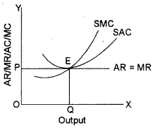 In the given diagram OQ is equilibrium output where SMC is equal to MR. Since SAC is tangent to P = AR = MR line, the firm covers only its SAC which includes normal profits.