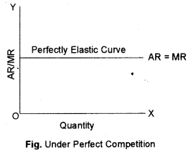 (a) AR and MR curves, under perfect competition, are equal to each other and parallel to OX-axis. The price at AR is constant as it is fixed by industry with every additional sale of unit MR will be equal to AR.