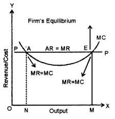 (a) Under perfect competition a firm’s, average revenue curve is equal to the marginal revenue curve due to uniform prices for homogeneous goods. In short-run, a competitive firm can earn supernormal profits, normal profits can suffer losses also. Figure (A) shows a perfectly competitive firm earning normal profits. Since the firm is price taker, it has to decide the amount of output it should produce at the given price so as to maximise the profits following the equilibrium conditions.