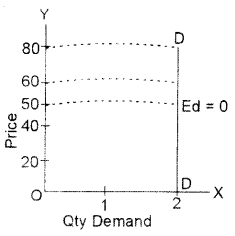 It is a perfectly inelastic demand curve. When quantity demanded does not change at all in response to change in price of the commodity, demand for that commodity is said to be perfectly inelastic. The Demand curve is a straight line parallel to Y-axis.