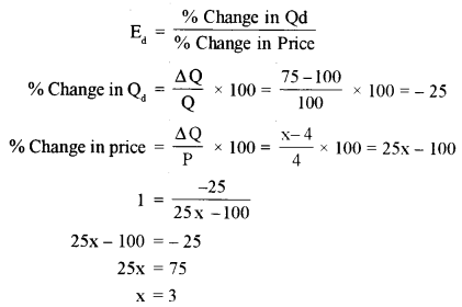 (vi) The demand for a commodity at 4 per unit is 100 units. The price of the commodity rises and as a result, its demand falls to 75 units. Find the new price if the price elasticity of demand for that commodity is I.