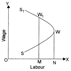 (a) The rise in the price of a good or service sometimes its lead to falling in its supply. For eg. the supply of labour. A higher wage rate enables the worker to maintain his existing material standard of living with less work and he may prefer extra leisure to more wages. The supply curve in such a situation will be backward bending sloping SS1.