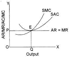 In the given diagram OQ is equilibrium output where SMC is equal to MR Since SAC is tangent to P = AR = MR line, the firm covers only its SAC which includes normal profits.