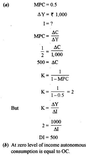 (a) Find the value of additional investment made by the government, when MPC 05 and the increase in income (ΔY) = ₹ 1000. [3]