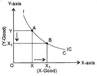 (a) (i) An indifference curve (IC) always slopes downward: This property implies that to increase the consumption of X-good, the consumer has to reduce the consumption of Y good so as to remain at the same level of satisfaction.