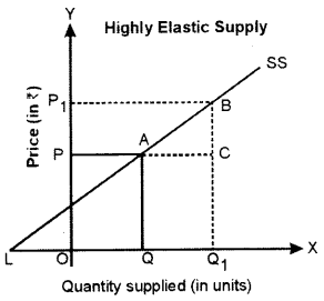 (i) Highly Elastic Supply (Es > 1): A supply curve, which passes through the Y-axis and meets the extended X-axis at some point. For example in fig. the supply is highly elastic.