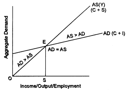 (c) According to the modern theory of income and employment determination, in any economy at any given time, income and employment are determined at that level where aggregate demand is equal to aggregate supply.