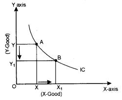 (b) (i) An indifference curve (IC) always slopes downward: This characteristic implies that to increase the consumption of X-good, the consumer has to reduce the consumption of Y-good, so as to remain at the same level of satisfaction as shown in i the given diagram: