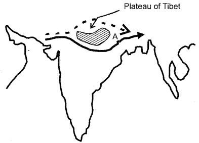 (iii) In the diagram given below, A represents the path of an upper atmospheric air movement in the cold weather season.