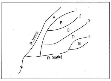 (b) Name any two of the five doabs marked A, B, C, D and E.