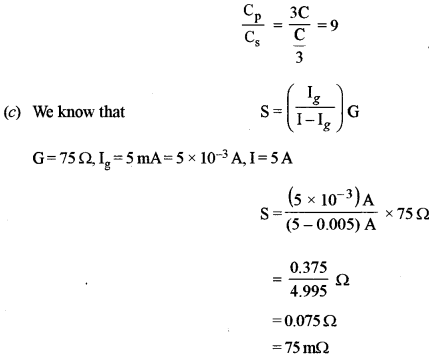 (c) A galvanometer with a resistance of 75 Ω produces a full scale deflection with a current of 5 mA. How can this galvanometer be converted into an ammeter which has a range of 0 – 5 A ? [2]