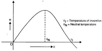 (b) Show with the help of a labelled graph, how thermo emf ‘e’ developed by a thermocouple varies with θ, the temperature difference between the two junctions. On the graph, mark neutral temperature as θN and temperature of inversion as θI. [2]