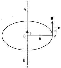 (a) Consider a long straight conductor carrying a current I amp. It is desired to find the magnetic flux density at P at a distance a from the conductor. The lines of force will be circular with the center on the conductor.