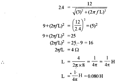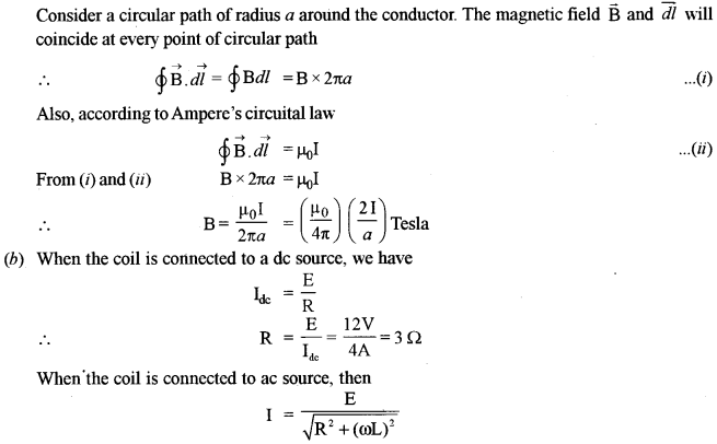 (b) A current of 4 A flows in a coil when it is connected to a 12 V dc source. When the same coil is connected to an ac source (12 V, 8 Hz), a current of 2.4 A flows in the coil. Calculate coefficient of self inductance (L) of the coil. [4]