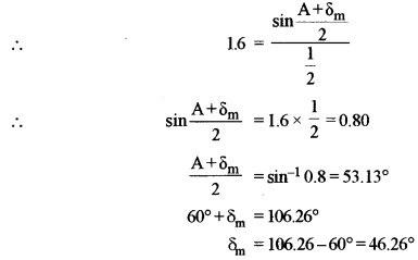 (a) Calculate angle of minimum deviation (δm) for a regular glass prism. (Refractive index of glass = 16) [2]