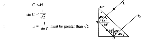 (viii) The angle marked ×° in the fig. is 45°. Since the LN suffers total internal reflection, the critical angle C must be less than 45°.