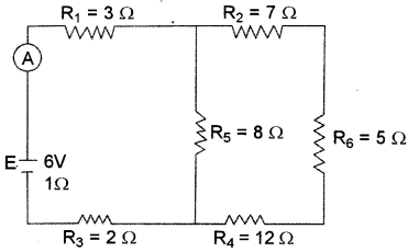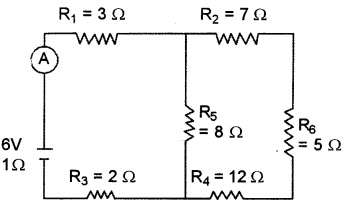 (a) In the circuit shown in figure below, E is a battery of emf 6 V and internal resistance 1 Ω. Find the reading of the ammeter A, if it has negligible resistance : [4]