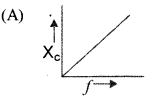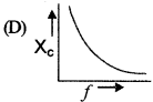 (iii) Which one of the following graphs in figure represents variation of reactance ‘Xc’ of a capacitor with frequency ‘f’ of an ac supply :