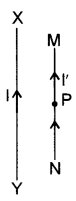 (a) Figure alongside shows a point P near a long conductor XY carrying a current I. MN is a short current carrying conductor, kept at the point P, parallel to the conductor XY. [2]
