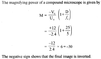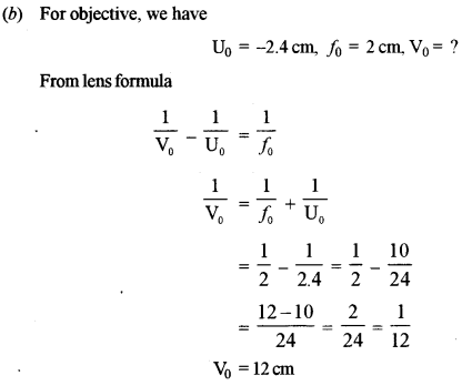 (b) A compound microscope consists of an objective of focal length 2 cm and an eye piece of focal length 5 cm. When an object is kept 2.4 cm from the objective, final image formed is virtual and 25 cm from the eye piece. Determine magnifying power of this compound microscope in this set up i.e., in normal use. [3]