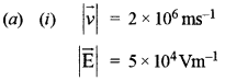 (a) Electrons having a velocity \(\vec{v}\) of 2 × 106 ms-1 pass undeviated through a uniform electric field \(\vec{E}\) of intensity 5 × 104 Vm-1 and a uniform magnetic field \(\vec{B}\) . [2]