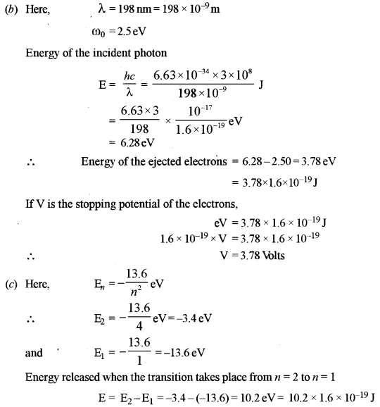 (b ) Monochromatic light of wavelength 198 nm is incident on the surface of a metal, whose work function is 2.5 eV. Calculate the stopping potential. [3]