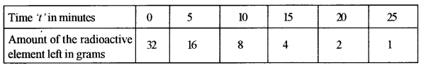 (b) Complete the following table for a radioactive element whose half life is 5 minutes. Assume that you have 32 g of this element at start, i.e., at t = 0. [3]