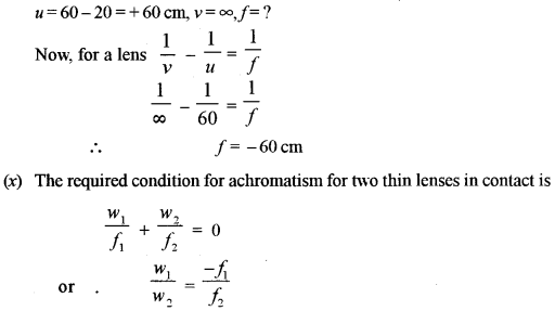 (x) What condition must be satisfied by two thin lenses kept in contact so that they form an achromatic doublet, i.e., a combination free from chromatic aberration ?
