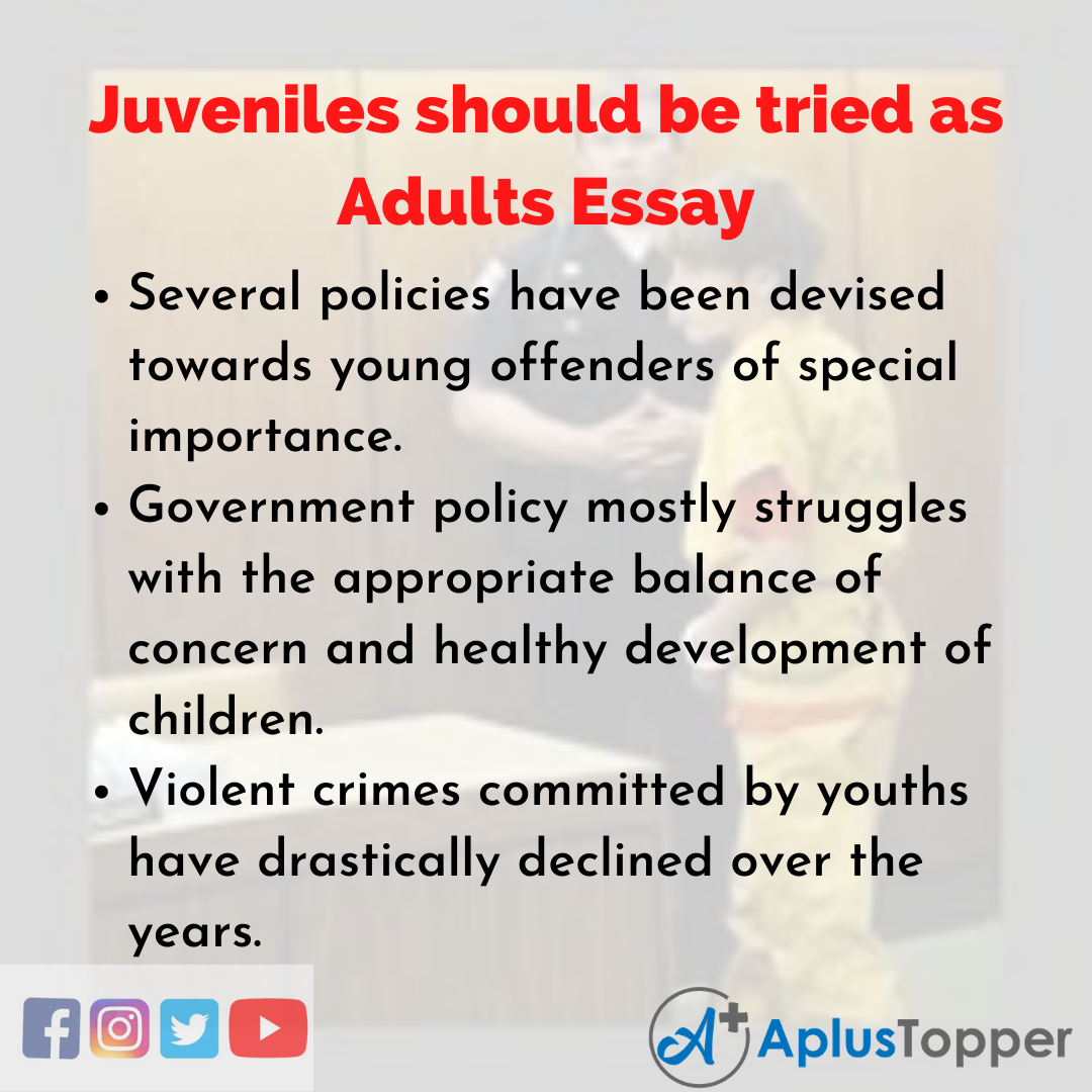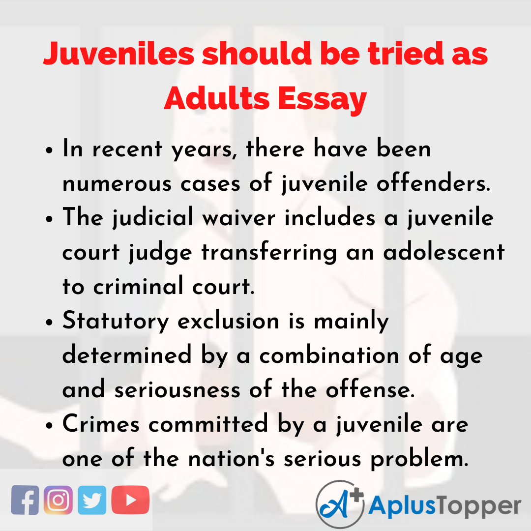 Short Essay on Juveniles should be tried as Adults 150 Words in English