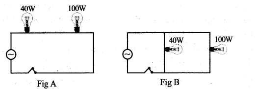 a. If current through 40W bulb in the circuit A is 0.6 A What is the current through 100 W bulb in the same circuit.