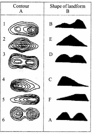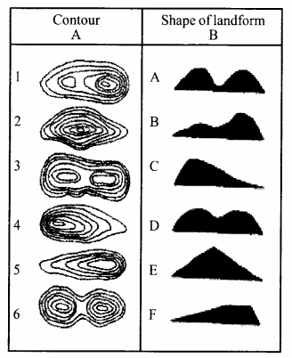 Match the contour in column A with the shape of landforms in column B.