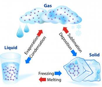 - The changes in the states of matter are caused by heating or cooling. For example, ice melts when it is heated and water changes into ice when it is frozen.