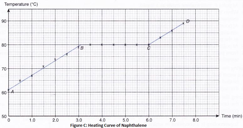 - A graph of temperature against time is plotted for the heating of naphthalene, as shown in Figure C.