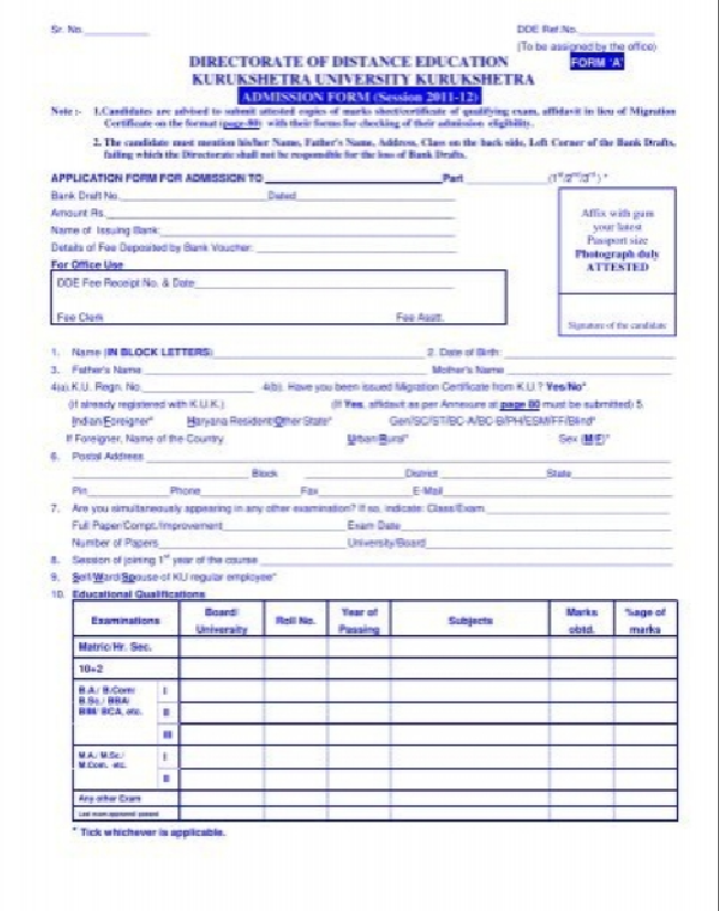 Or, Buy the application form from the Kurukshetra University Distance Education canter. - Fill all the required information accurately in the Application form.