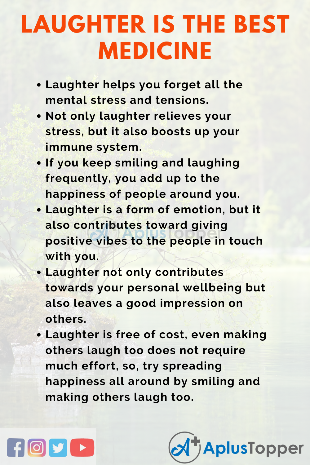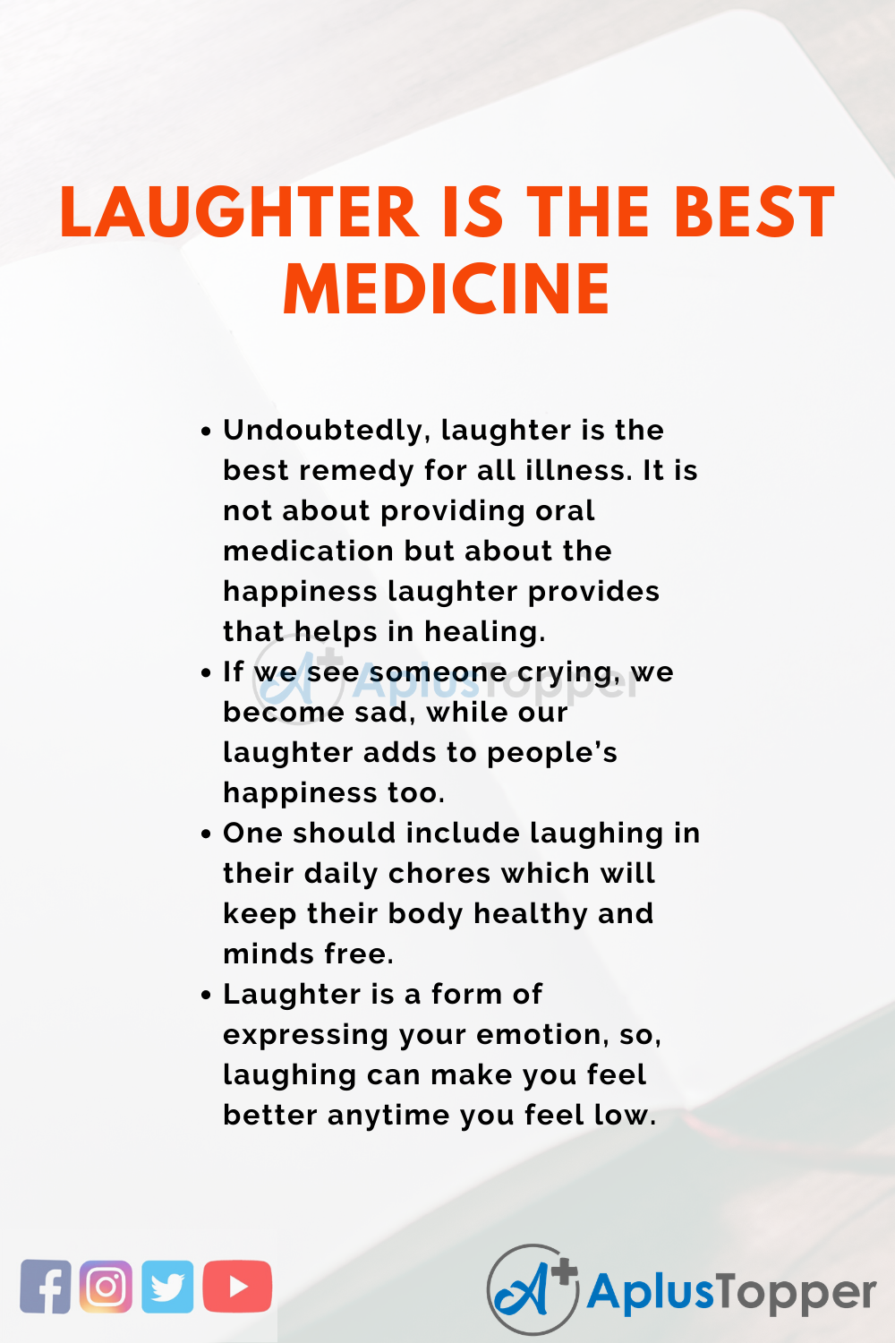 Laughter is the Best Medicine Essay is usually given to classes 7, 8, 9, and 10.