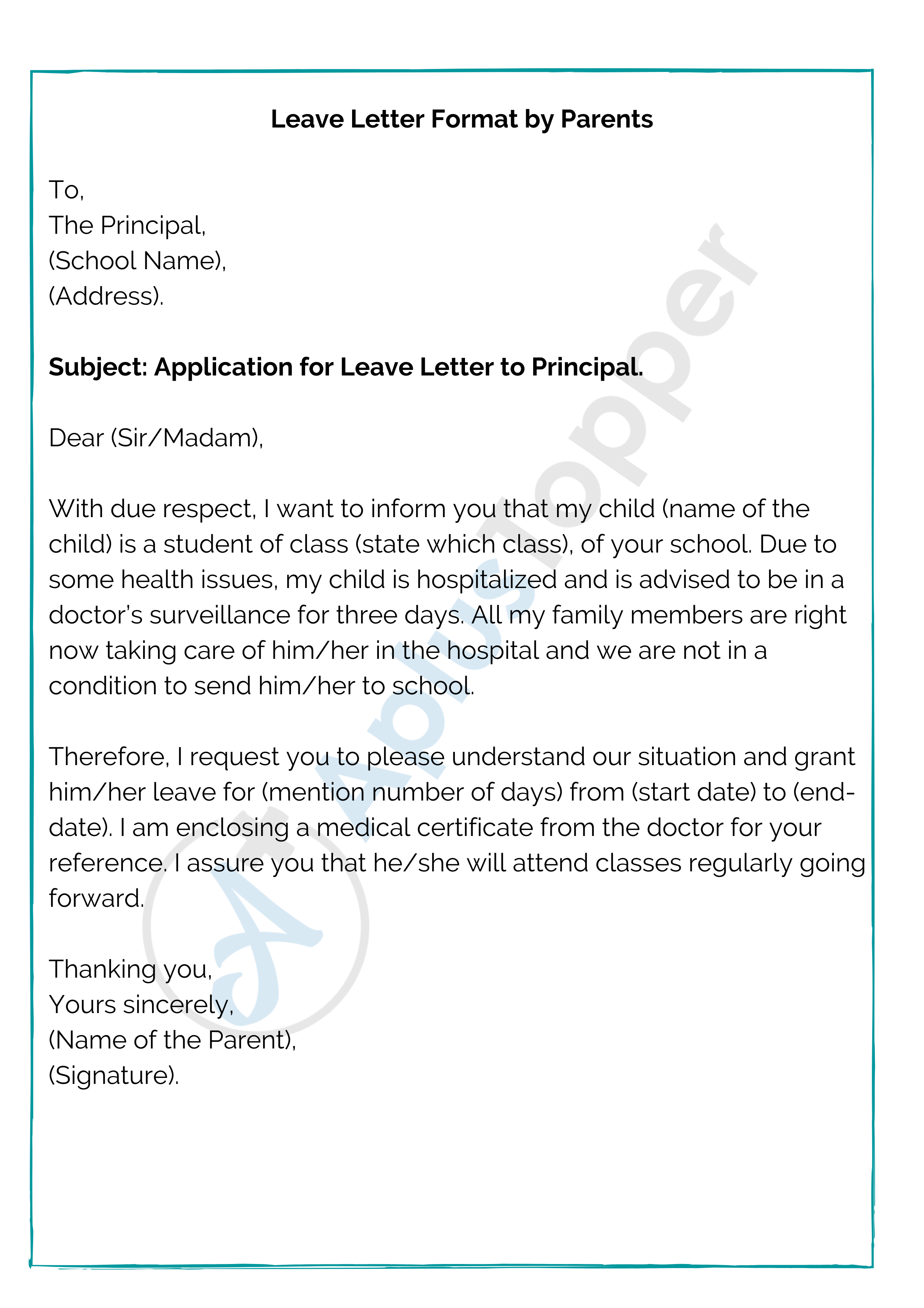 Leave Letter Format By Parents