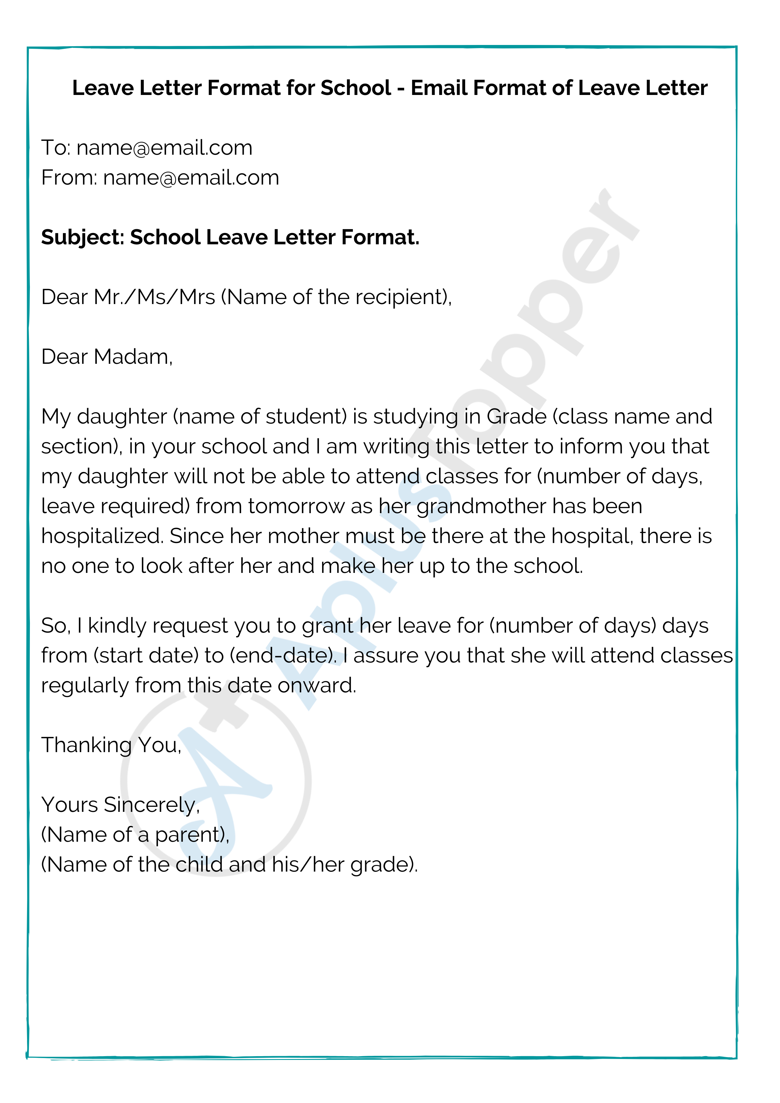 Leave Letter Format for School – Email Format of Leave Letter