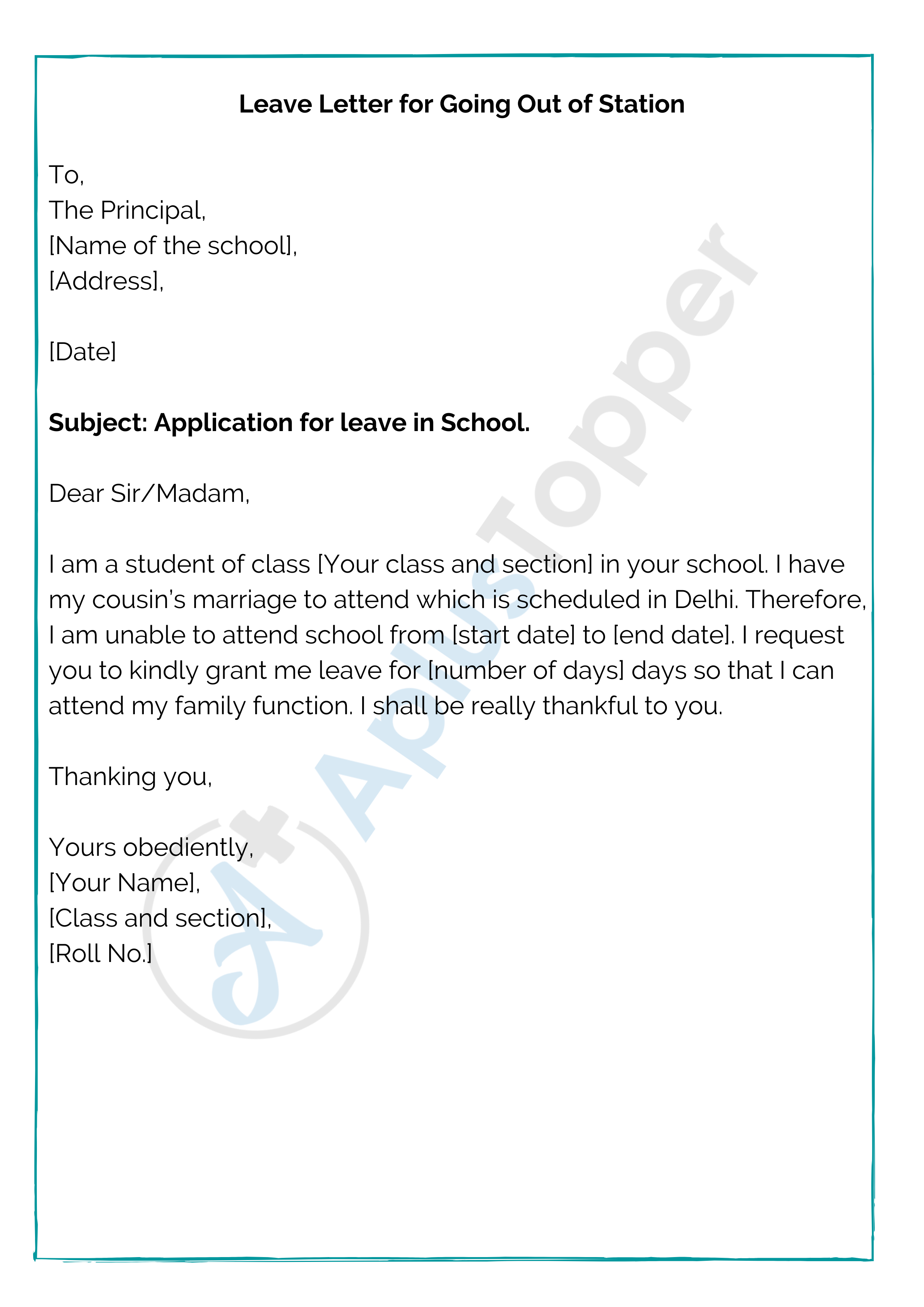 Leave Letter for Going Out of Station