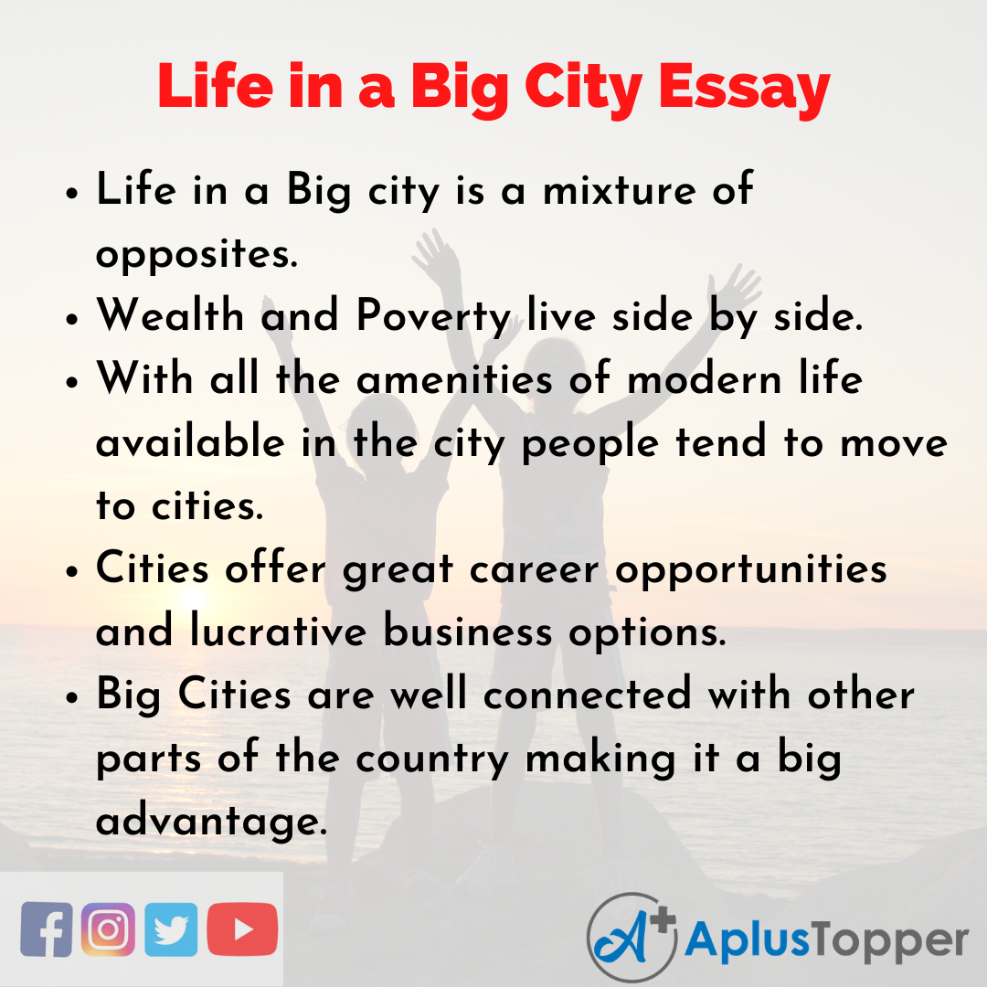 Life In A Big City Essay: We are Providing long and short essay samples on the topic of Life In A Big City Essay to help students. And we are also offering ten pointers on the topic so that the students can use them as a reference while structuring their essays. On the topic Life In A Big City Essay, we are providing a long essay and another short essay. so that students can use them as a reference for writing their assignments and essays in an exam.