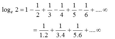 (2) The series expansion of loge (1 + x) may fail to be valid, if |x| is not less than 1. It can be proved that the logarithmic series is valid for x = 1. Putting x = 1 in the logarithmic series.