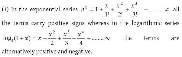 (2) In the exponential series the denominator of the terms involve factorial of natural numbers. But in the logarithmic series the terms do not contain factorials.