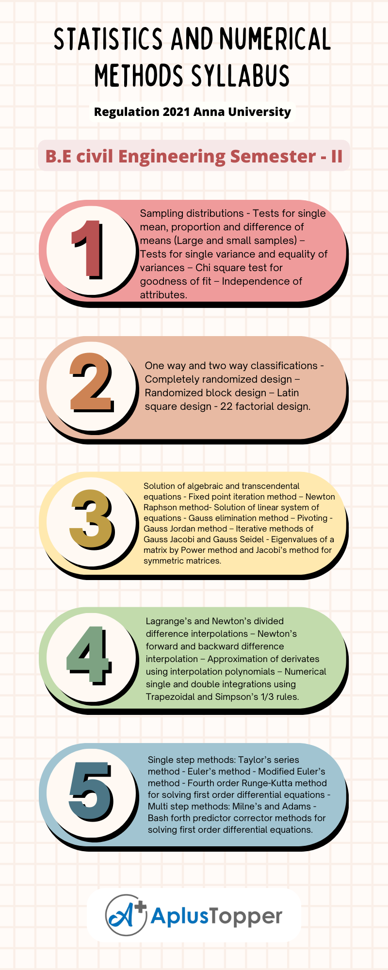 Anna University, Subject code – MA3251, deals with the B.E civil Engineering Semester – II Statistics And Numerical Methods syllabus regulation 2021 relating to affiliated institutions. From here, Students can get assistance in preparing notes to excel in academic performance.
