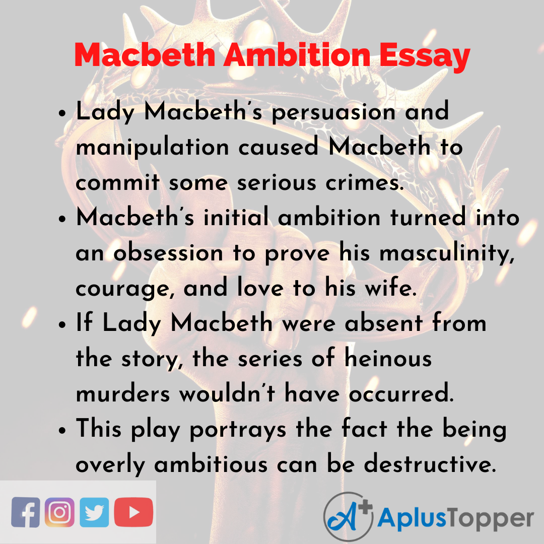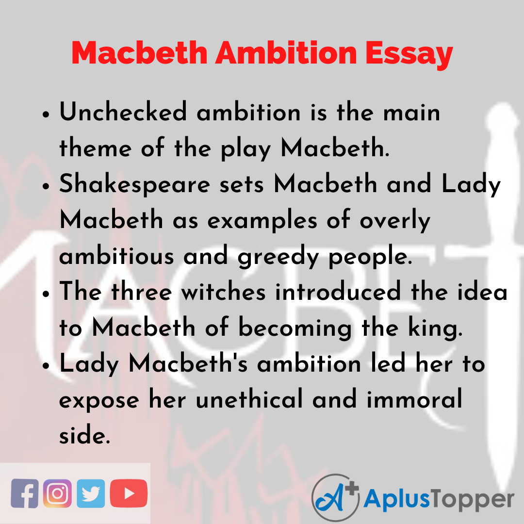Short Essay on Macbeth Ambition is usually given to classes 1, 2, 3, 4, 5, and 6.