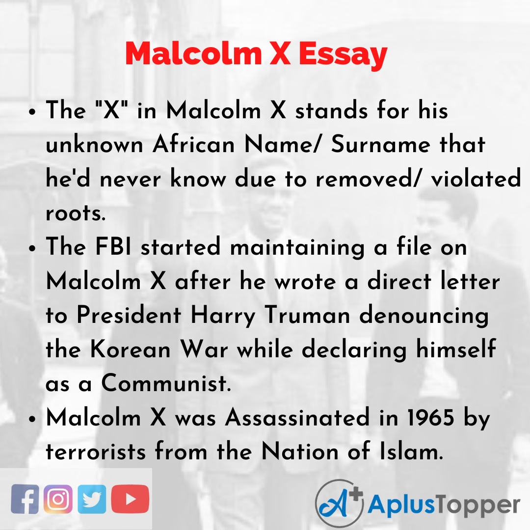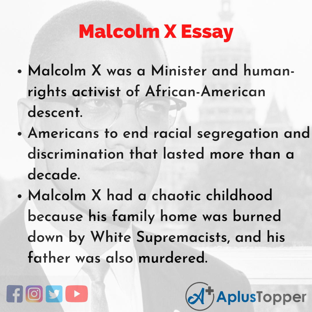 Short Essay on Malcolm X is usually given to classes 1, 2, 3, 4, 5, and 6.
