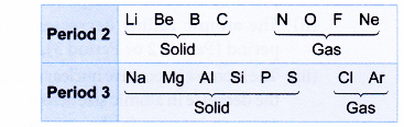 - Elements in Period 2 and Period 3 change from solid to gas when going across the period.
