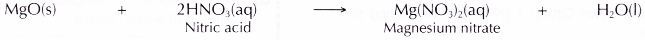 | MgO | No change. The white powder does not dissolve. | The white powder dissolves to form a colourless solution. | Magnesium oxide shows basic properties only. Hence, magnesium as a metal, forms a basic oxide. |