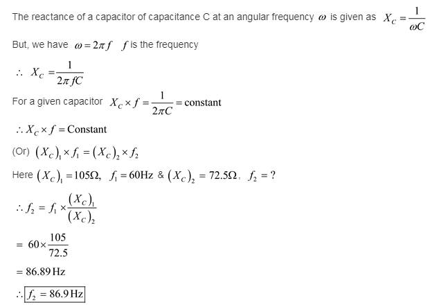 The capacitive reactance of a capacitor at 60.0 Hz is 105 Ω. At what frequency is its capacitive reactance 72.5 Ω?