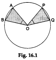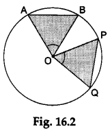Consider a circle with radius r and centre O having two chords AB and PQ such that ∠AOB = ∠POQ (see Figure 16.1).